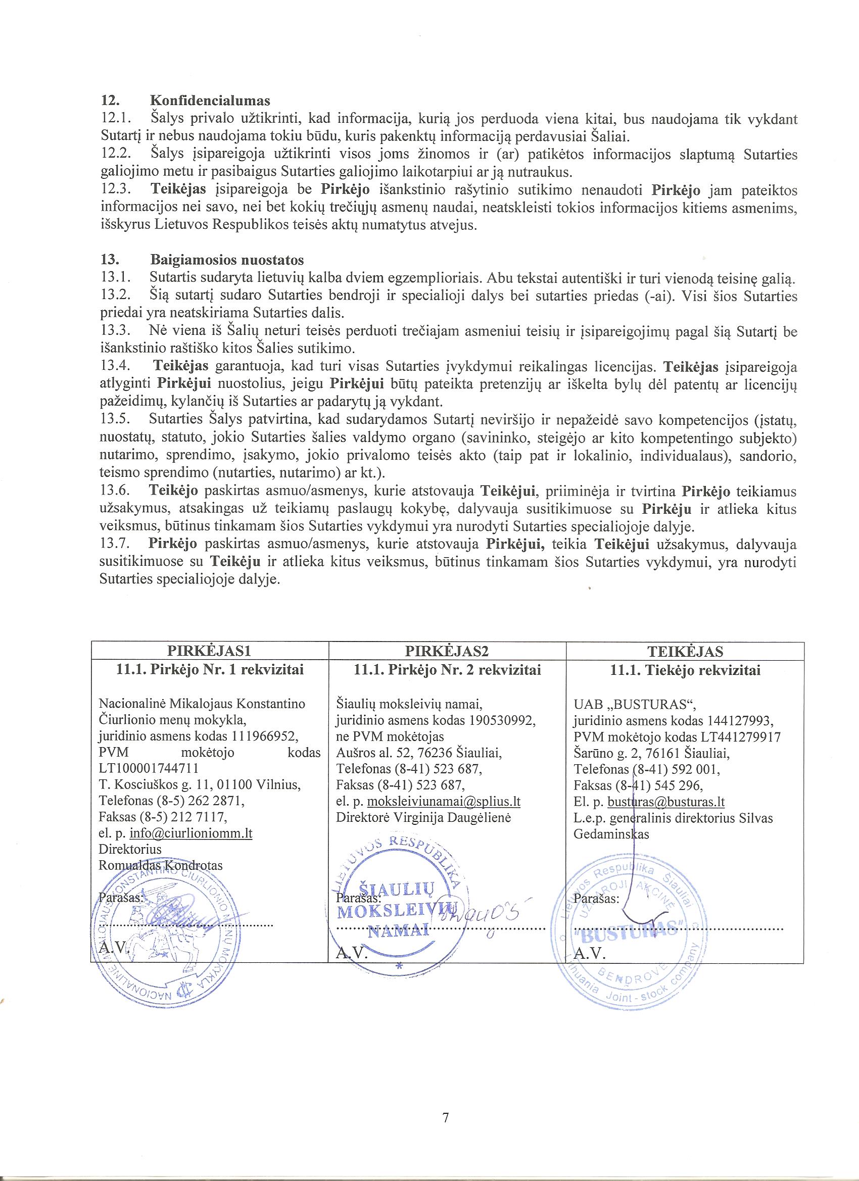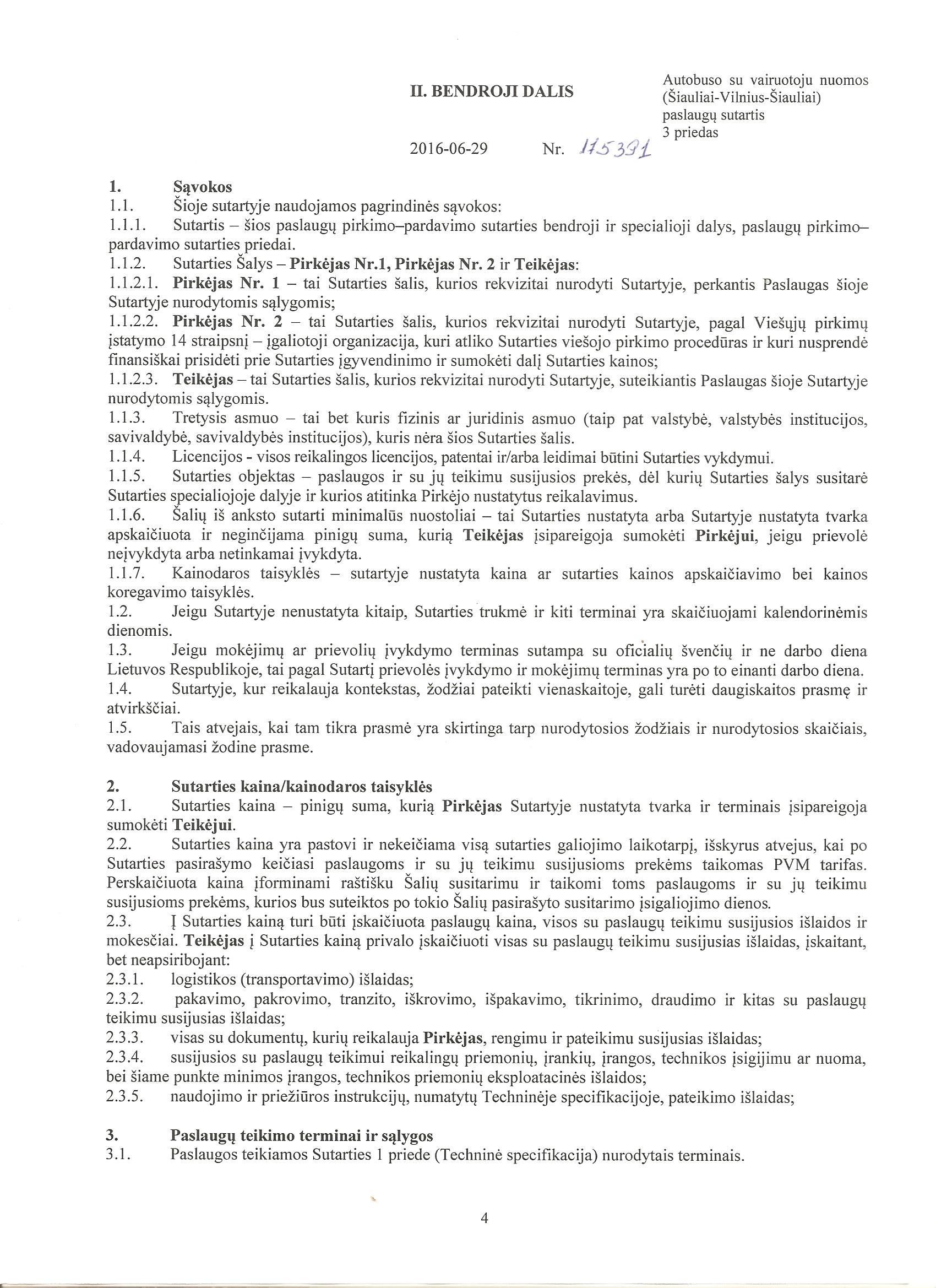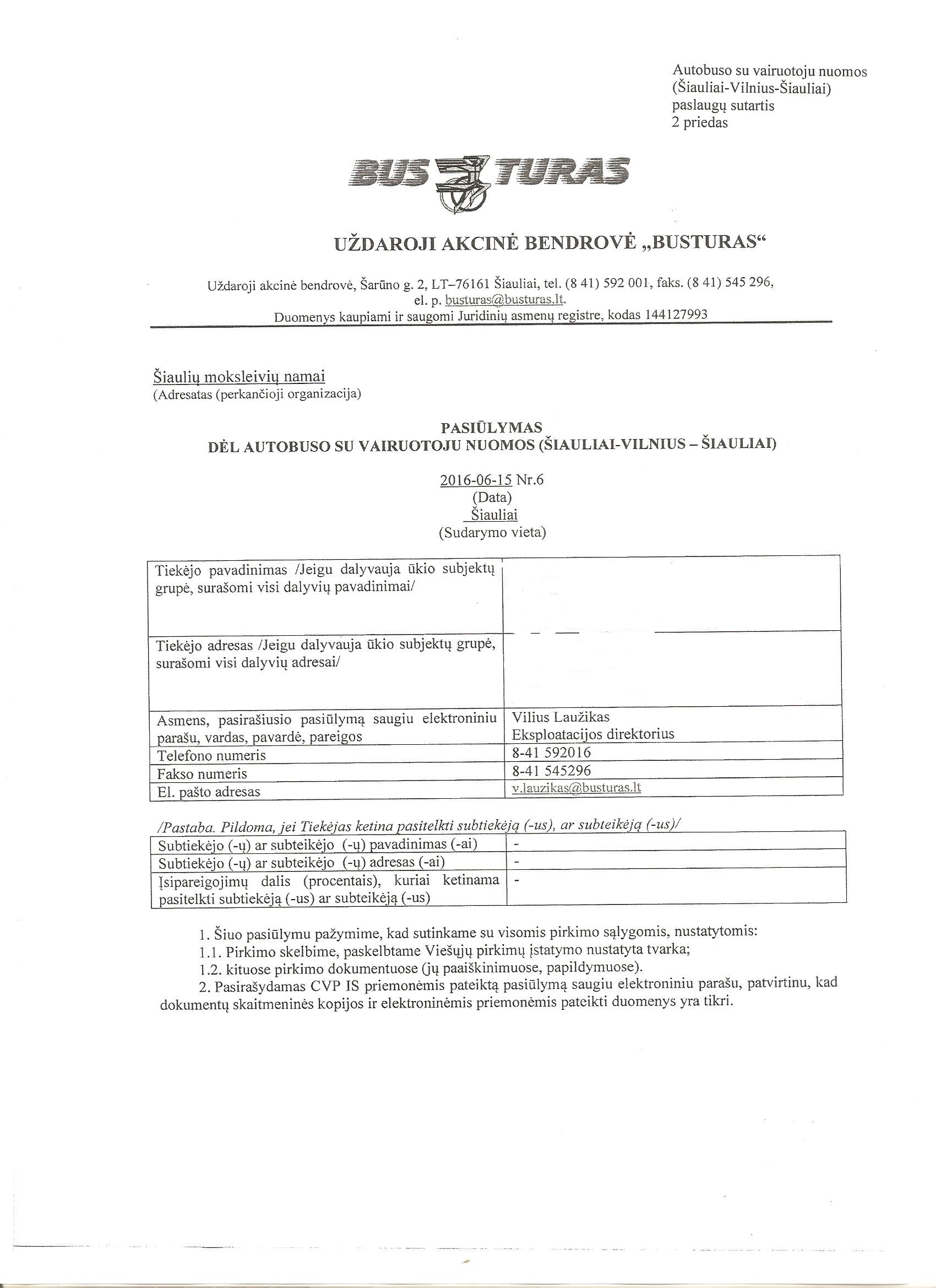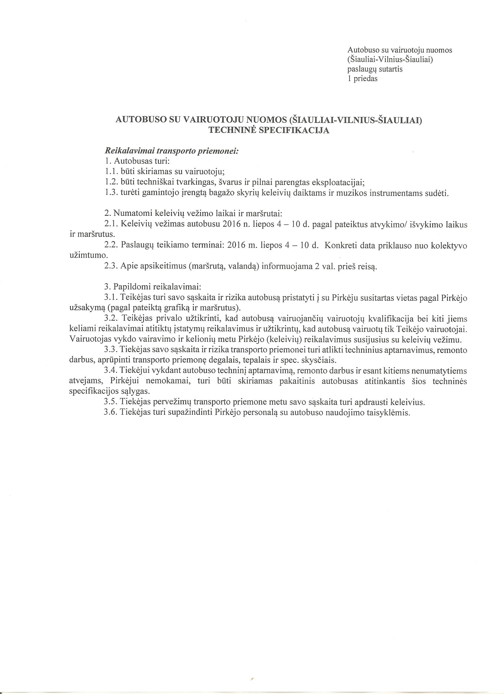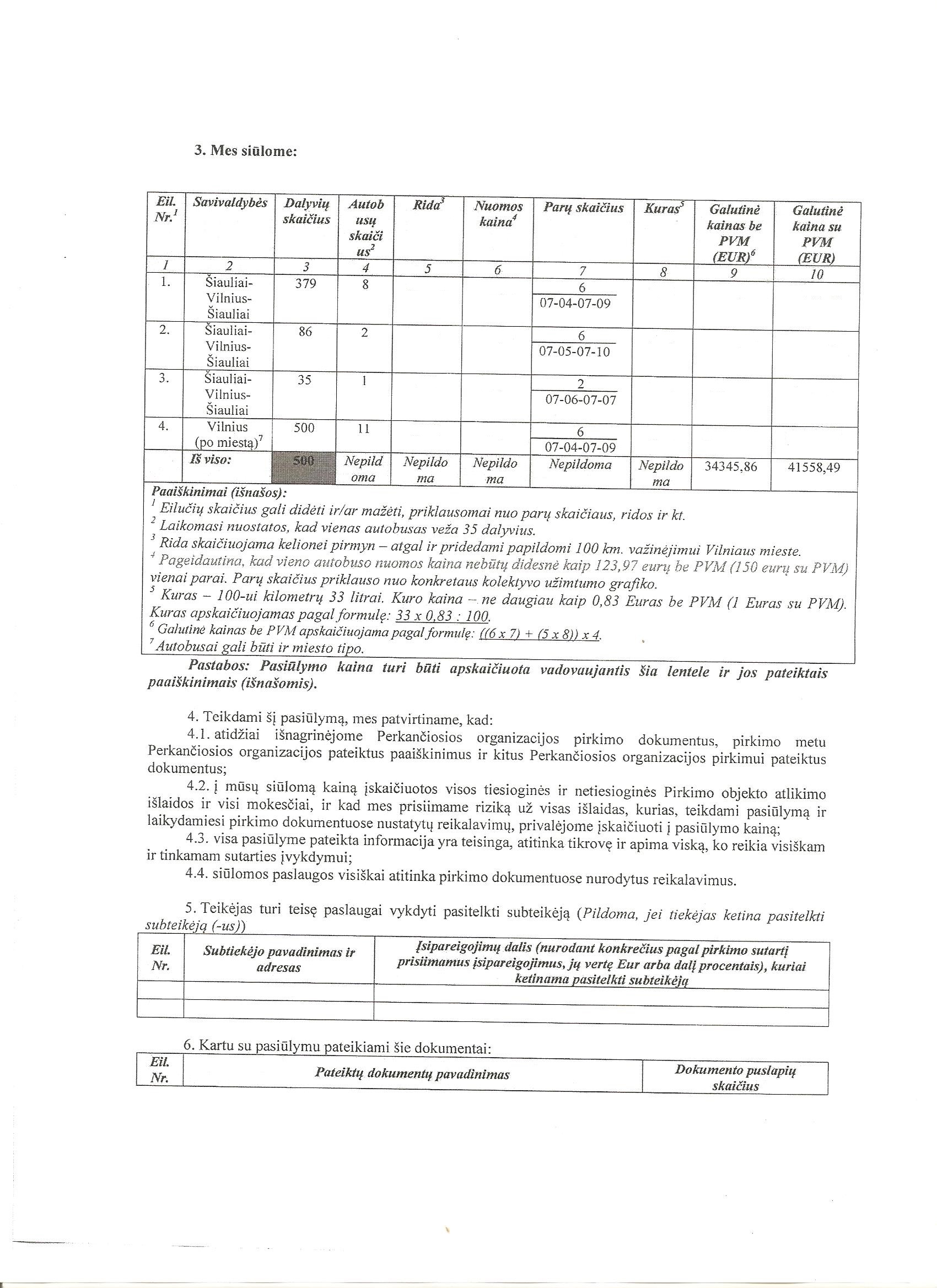 Autobuso su vairuotoju nuomos (Šiauliai-Vilnius-Šiauliai) paslaugų sutartis už 19 239,00 €